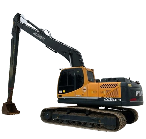 ESPECIFICACIÓN DETALLE Modelo Hyundai Robex 220LC-9 Tipo de máquina Excavadora hidráulica sobre orugas Peso operativo 22.100 kg Motor Cummins QSB6.7 Potencia neta 119 kW (160 hp) a 2.000 rpm Capacidad del cucharón 0,8 – 1,34 m³ (según aplicación) Profundidad máxima de excavación 6.730 mm Alcance máximo al nivel del suelo 9.930 mm Altura máxima de descarga 6.920 mm Fuerza de excavación del brazo 10.300 kgf Fuerza de excavación del cucharón 15.100 kgf Ancho de la zapata estándar 600 mm Presión sobre el suelo ~0,46 kg/cm² Capacidad del tanque de combustible 400 litros Sistema hidráulico Sistema EPOS (Electronic Power Optimizing System) Cabina Cabina con ROPS, A/C, asiento ajustable Nivel de emisiones Tier 3 / Stage IIIA (según configuración)